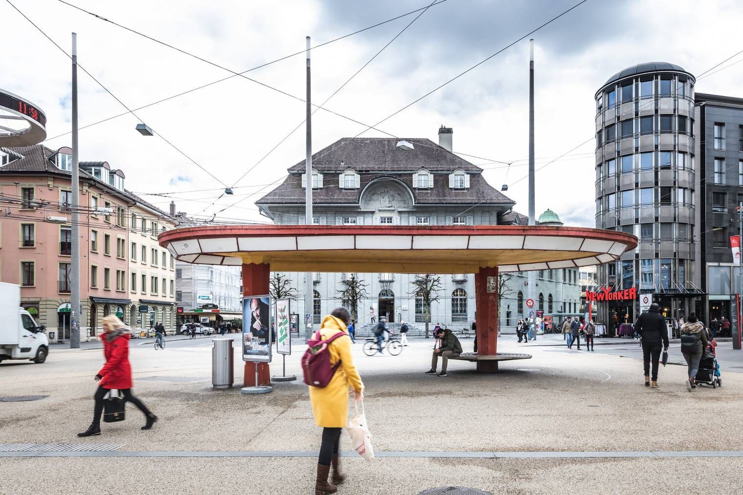 Das markante Runddach auf dem Zentralplatz war früher eine Wartehalle des ehemaligen Tramnetzes. Heute gibt es noch acht davon, aufgrund ihrer Form auch «Pilze» genannt.