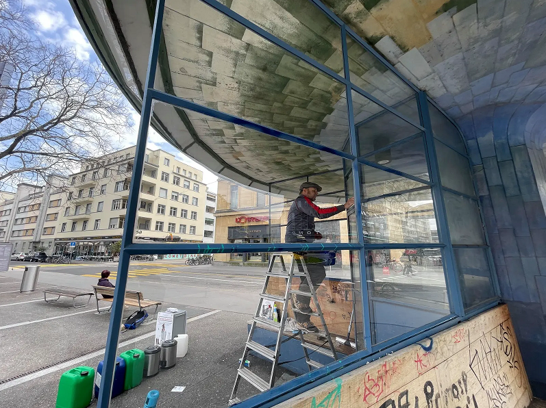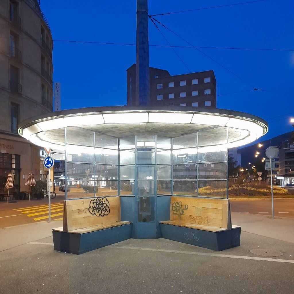 Die Tramwartestellen, die ‹Pilze›, sind Ikonen im Stadtbild von Biel. Reisende sind immer wieder begeistert, an vielen Plätzen diese überzeugenden Zeitzeugen des Neuen Bauens anzutreffen. Leider werden sie mehr schlecht als recht unterhalten. Die Fenster sind verschmiert, das Mobiliar ist dreckig. Am 29. März 2023 habe ich die Fenster, die Bänke, das Unterdach mit der Originalmalerei und den Sockel gereinigt. Nur die Tag-versprayten Holzbänke bringen ausschliesslich Profis wieder in Ordnung. Damit können sich diesen Sommer die Einheimischen wie auch Tagestouristen am sauber gepflegten Pilz erfreuen. Er ist eine wichtige Visitenkarte der Stadt und ein beliebtes Photosujet. Ici c'est Bienne.