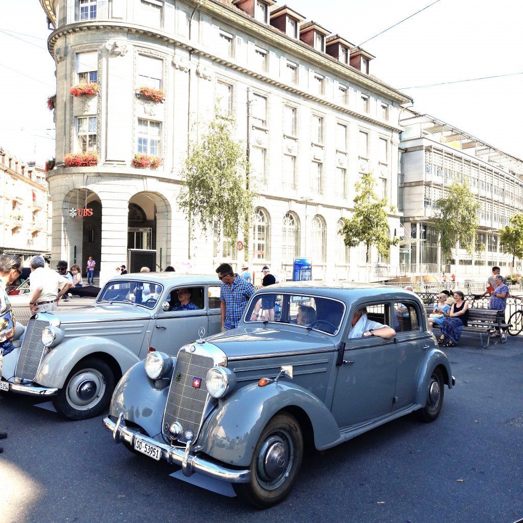 Le dimanche matin, le Mercedes-Benz Oldtimer Club Bern a fait une brève visite à la Motown de Bienne. Les trente raretés mobiles se sont garées sur la place Centrale et j'ai pu présenter le modernisme aux cinquante passagers lors d'une petite visite guidée. Deux heures plus tard, la ville automobile appartenait à nouveau à General Motors.